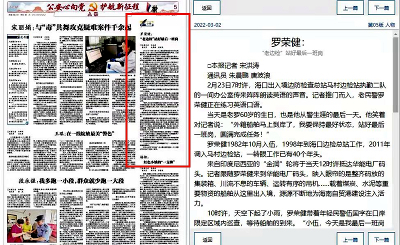 《人民公安報(bào)》:“老邊檢”羅榮健站好最后一班崗