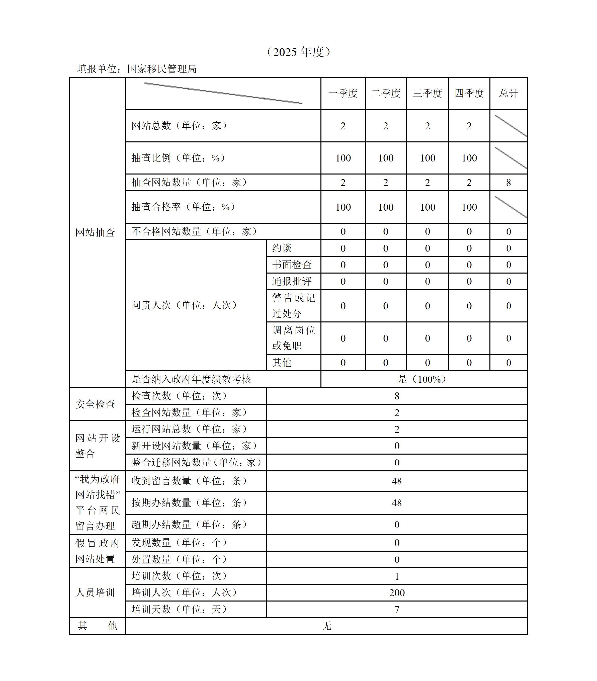 2025年國(guó)家移民管理局政府網(wǎng)站工作年度報(bào)表專(zhuān)題