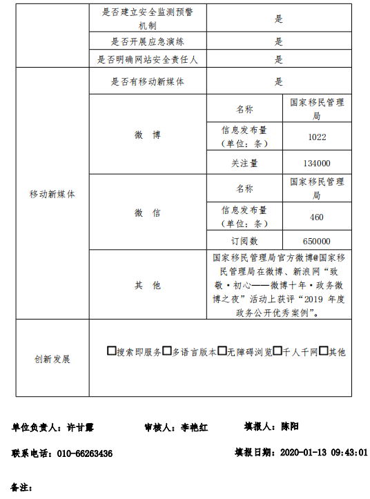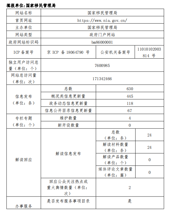 國家移民管理局門戶網(wǎng)站工作年度報(bào)表