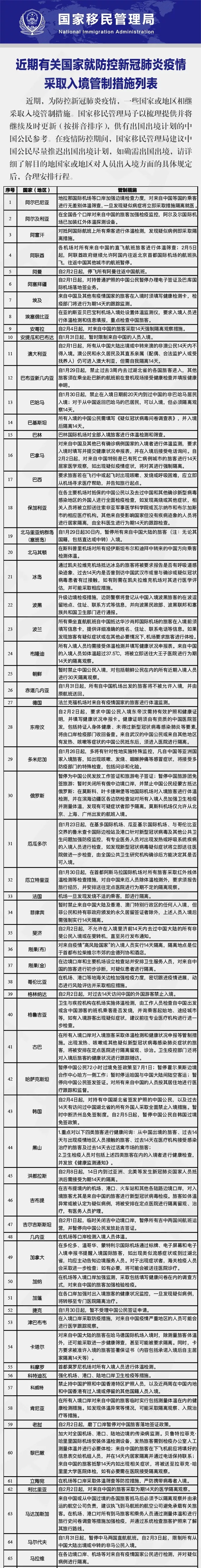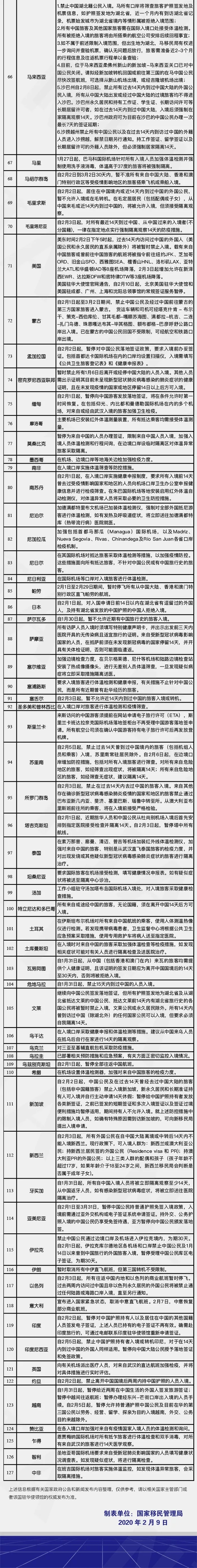 近期有關(guān)國家入境管制措施提醒(2020.2.9)