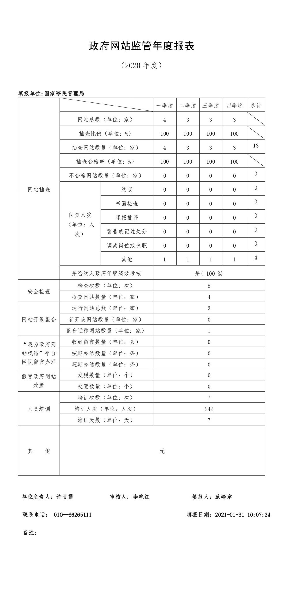 國家移民管理局政府網(wǎng)站監(jiān)管年度報表