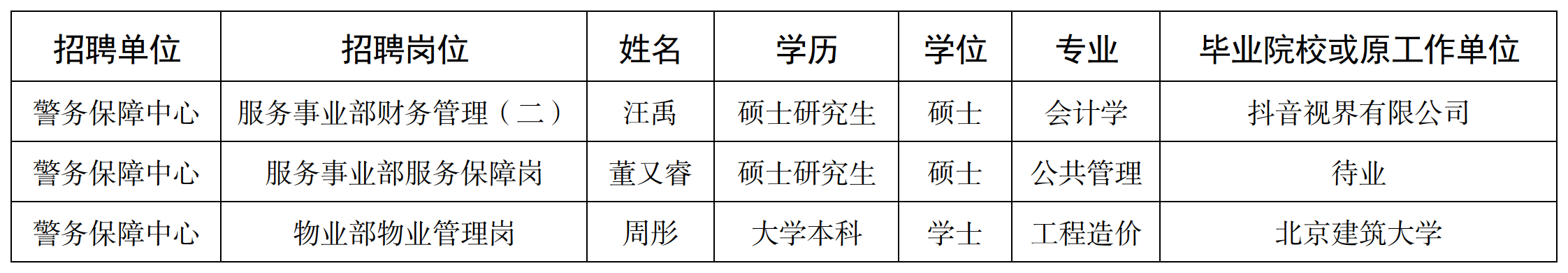 服務(wù)事業(yè)部財(cái)務(wù)管理(一)計(jì)劃招聘1人,進(jìn)入面試環(huán)節(jié)5人中,2人放棄、2人體能測試不達(dá)標(biāo),1人面試成績未達(dá)到合格分?jǐn)?shù)線,取消該崗位招聘計(jì)劃;安保交通部安全保衛(wèi)崗計(jì)劃招聘2人,進(jìn)入面試環(huán)節(jié)5人中,1人放棄,4人體能測試不達(dá)標(biāo),取消該崗位招聘計(jì)劃。