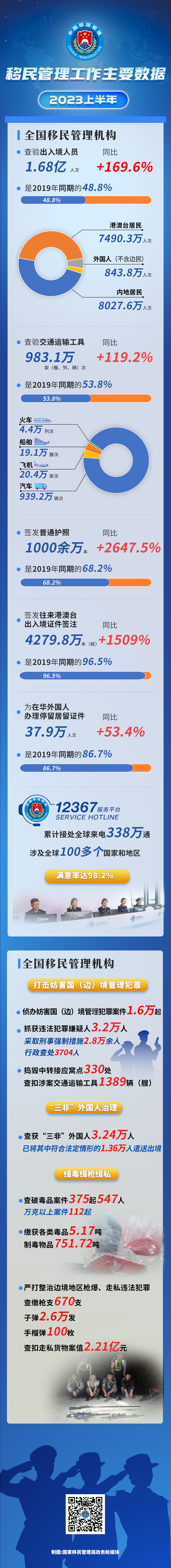 一圖看懂!2023年上半年移民管理工作主要數(shù)據(jù)