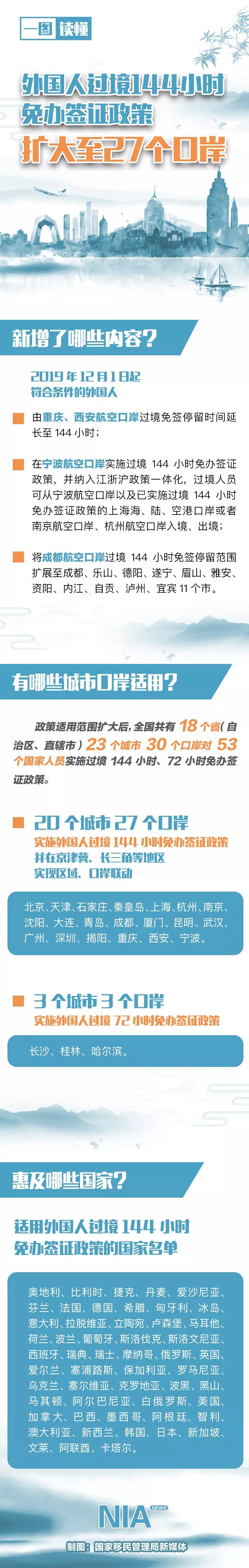 ?????????????鏈接:NIA權(quán)威發(fā)布:外國人過境144小時(shí)免辦簽證政策擴(kuò)大至27個(gè)口岸!