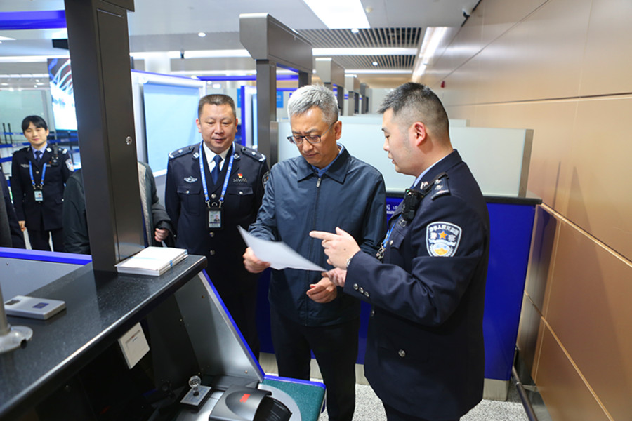 曲云海副局長實(shí)地查看了重慶江北國際機(jī)場邊檢執(zhí)勤現(xiàn)場查驗(yàn)設(shè)施建設(shè)和工作開展情況,在邊檢勤務(wù)指揮中心聽取了重慶總站2019年工作情況匯報(bào)。