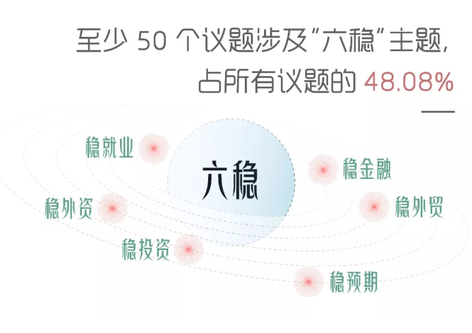 “六穩(wěn)”構(gòu)成貫穿2019年國務(wù)院常務(wù)會議的一條政策主線,涵蓋了至少50個議題。全年41篇新聞通稿里28篇都有“穩(wěn)”字,9月4日的常務(wù)會更明確提出要加大力度做好“六穩(wěn)”工作。