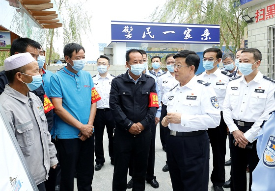 8月29日至9月2日,國(guó)務(wù)委員、公安部黨委書(shū)記、部長(zhǎng)趙克志在內(nèi)蒙古和寧夏調(diào)研。圖為趙克志來(lái)到寧夏永寧縣閩寧鎮(zhèn)派出所原隆村警務(wù)工作站,詳細(xì)了解社區(qū)警務(wù)工作情況,并與積極參與“原隆紅義警”工作的群眾親切交談。