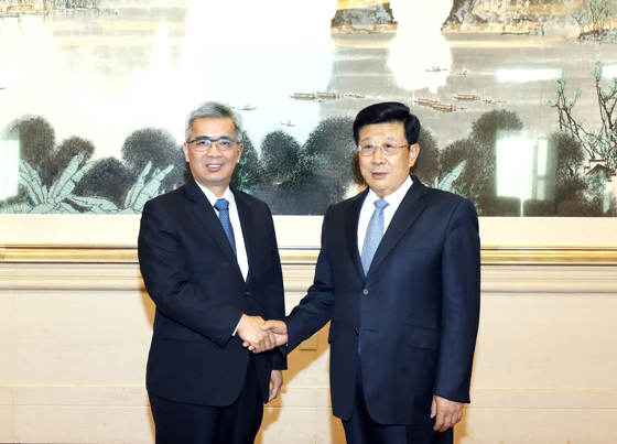 國務委員、公安部部長趙克志9月17日在京會見澳門特別行政區(qū)保安司司長黃少澤率領的澳門紀律部隊高層代表團。