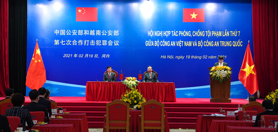 2月19日,中越兩國公安部第七次合作打擊犯罪會議在河內(nèi)舉行。國務(wù)委員、公安部部長趙克志與越共中央政治局委員、公安部部長蘇林共同主持會議。