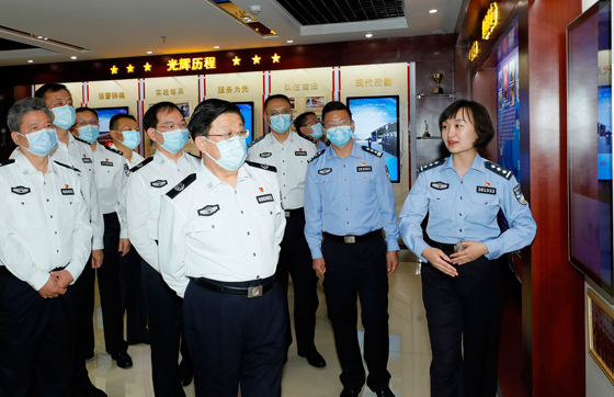 5月3日至6日,國(guó)務(wù)委員、公安部黨委書(shū)記、部長(zhǎng)趙克志在云南調(diào)研。圖為趙克志來(lái)到昆明出入境邊防檢查站,認(rèn)真觀(guān)看功模典型展覽和警史館,詳細(xì)聽(tīng)取他們開(kāi)展教育整頓情況匯報(bào)。