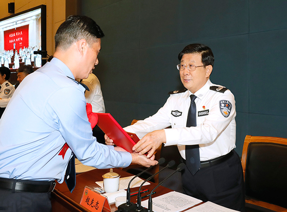 趙克志指出,今年以來(lái),全國(guó)公安機(jī)關(guān)深入貫徹落實(shí)習(xí)近平總書(shū)記重要指示精神,狠抓維護(hù)安全穩(wěn)定各項(xiàng)措施的落實(shí),為慶祝活動(dòng)安全順利舉行創(chuàng)造了良好政治社會(huì)環(huán)境。成績(jī)的背后,凝聚著全警的心血、汗水和付出。廣大公安民警輔警大力發(fā)揚(yáng)拼搏奉獻(xiàn)精神,不怕疲勞、連續(xù)作戰(zhàn),帶著對(duì)黨的深厚感情忘我工作,以實(shí)際行動(dòng)忠實(shí)踐行了對(duì)黨忠誠(chéng)、服務(wù)人民、執(zhí)法公正、紀(jì)律嚴(yán)明總要求,充分體現(xiàn)了黨史學(xué)習(xí)教育和教育整頓成果,展現(xiàn)了黨領(lǐng)導(dǎo)的社會(huì)主義國(guó)家人民警察克己奉公、無(wú)私奉獻(xiàn)的良好形象,這次受到表彰的先進(jìn)集體和個(gè)人就是其中的杰出代表。我們要大力弘揚(yáng)英模精神,深入組織開(kāi)展向崔道植等“七一勛章”獲得者、全國(guó)“兩優(yōu)一先”以及公安英雄模范學(xué)習(xí)活動(dòng),發(fā)揚(yáng)堅(jiān)定信念、踐行宗旨、拼搏奉獻(xiàn)、廉潔奉公的高尚品質(zhì)和崇高精神,激勵(lì)全警見(jiàn)賢思齊、干事創(chuàng)業(yè),形成崇尚先進(jìn)、學(xué)習(xí)先進(jìn)、爭(zhēng)當(dāng)先進(jìn)的濃厚氛圍,切實(shí)做到平常時(shí)候看得出來(lái)、關(guān)鍵時(shí)刻站得出來(lái)、危難關(guān)頭豁得出來(lái),為履行好黨和人民賦予的新時(shí)代使命任務(wù)不懈奮斗、永遠(yuǎn)奮斗。