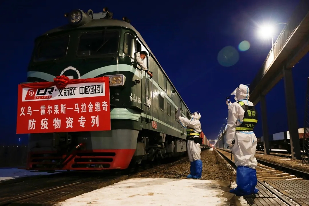 圖為新疆出入境邊防檢查總站霍爾果斯邊檢站民警查驗(yàn)中歐班列。(查瑞 攝)