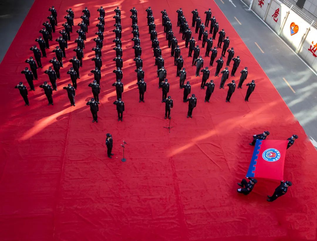 4月2日,國(guó)家移民管理局機(jī)關(guān)舉行向隊(duì)旗宣誓儀式。