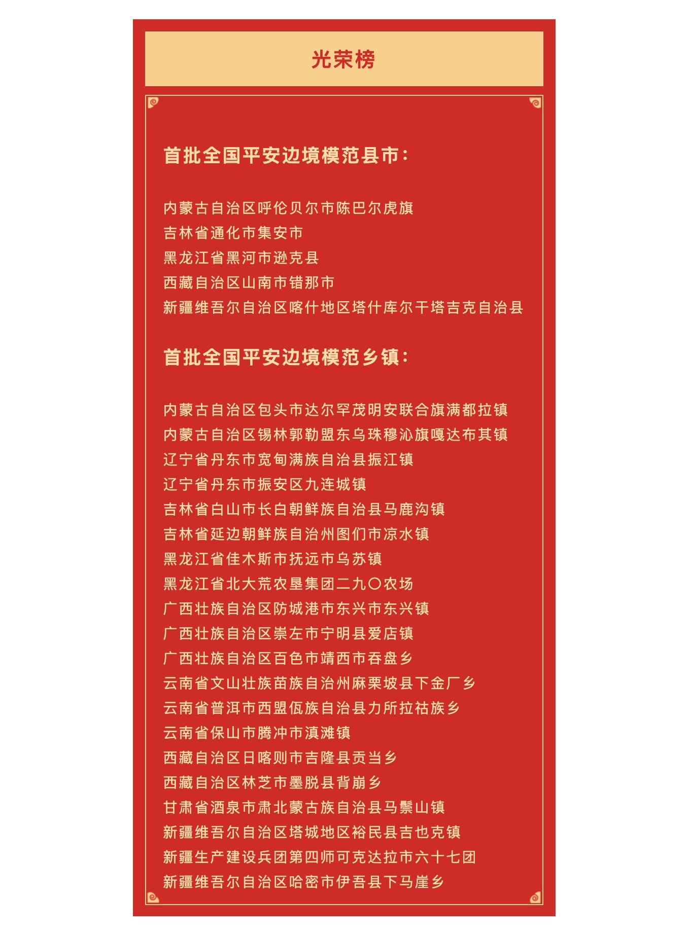 5縣市20鄉(xiāng)鎮(zhèn)獲首批平安邊境模范縣市鄉(xiāng)鎮(zhèn)命名