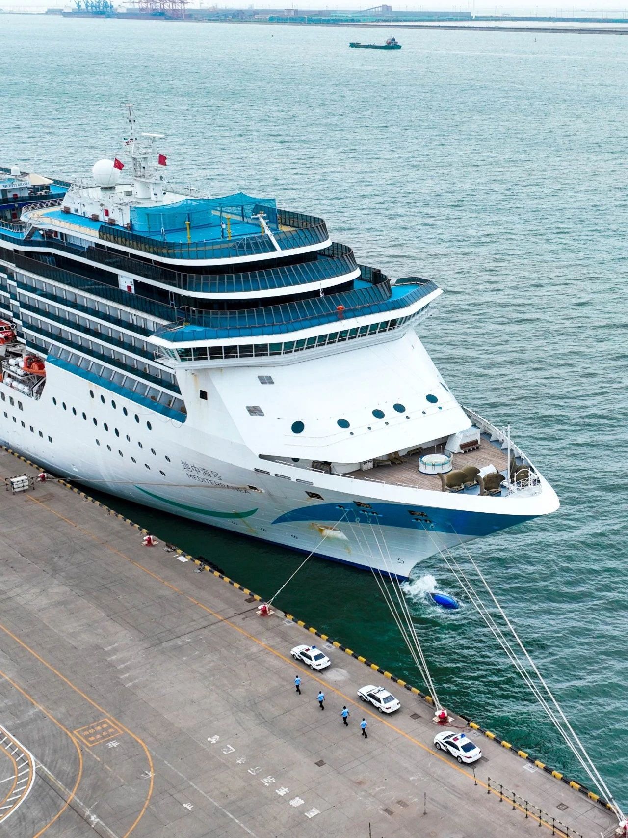 天津邊檢總站東疆邊檢站保障“地中海號”郵輪入境。(曾覺銳 攝)