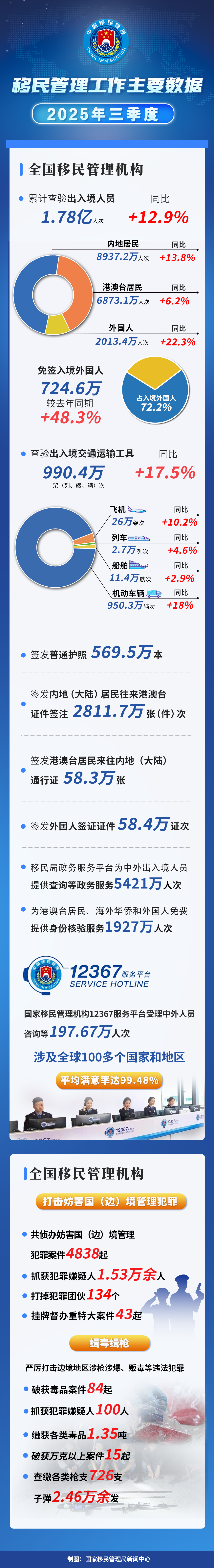 一圖看懂!2025年三季度移民管理工作主要數(shù)據(jù)