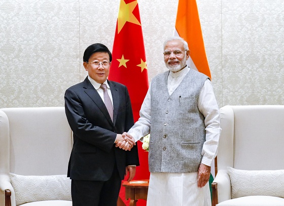 10月23日,印度總理莫迪在新德里會見國務(wù)委員、公安部部長趙克志。